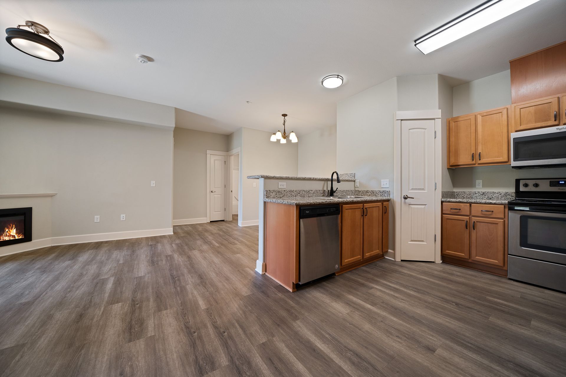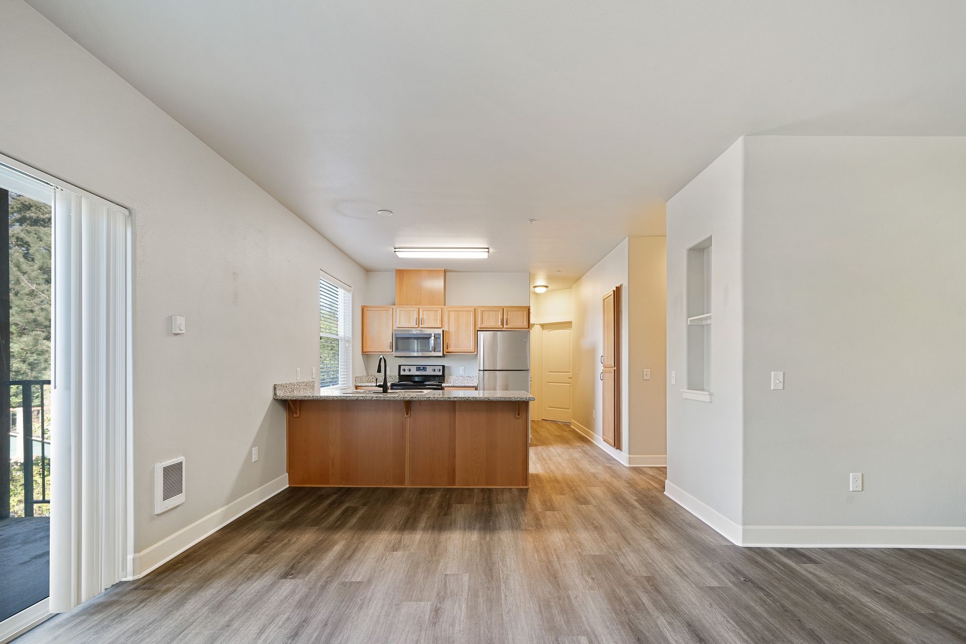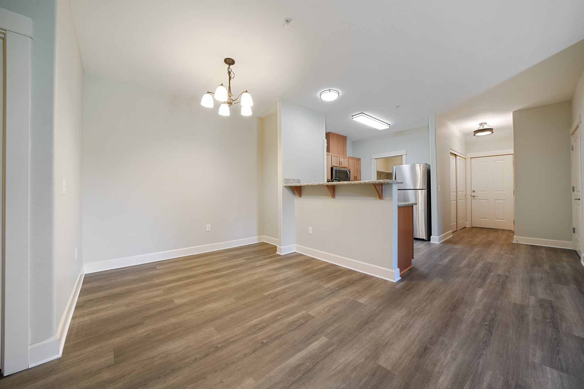 Gorgeous one- bedroom with luxury interior and open floorplan. Features luxury vinyl plank flooring, refrigerator with ice maker, built-in microwave, pantry, and washer and dryer! Enjoy coming home to relaxation.