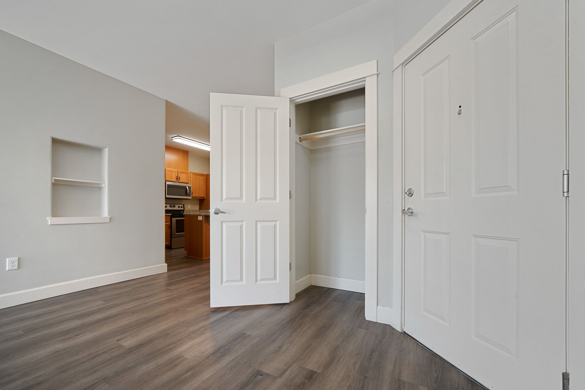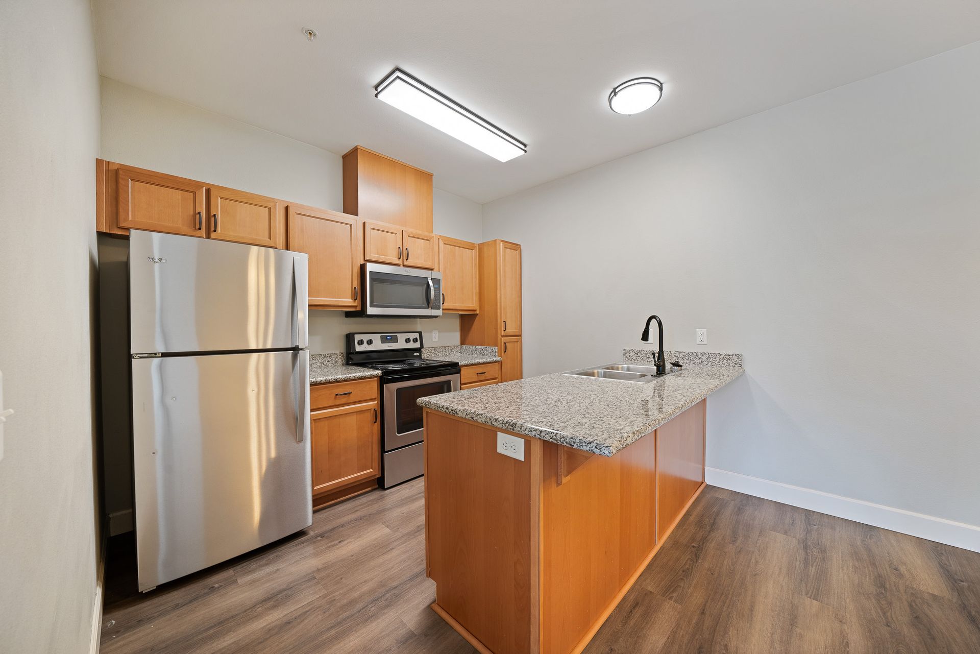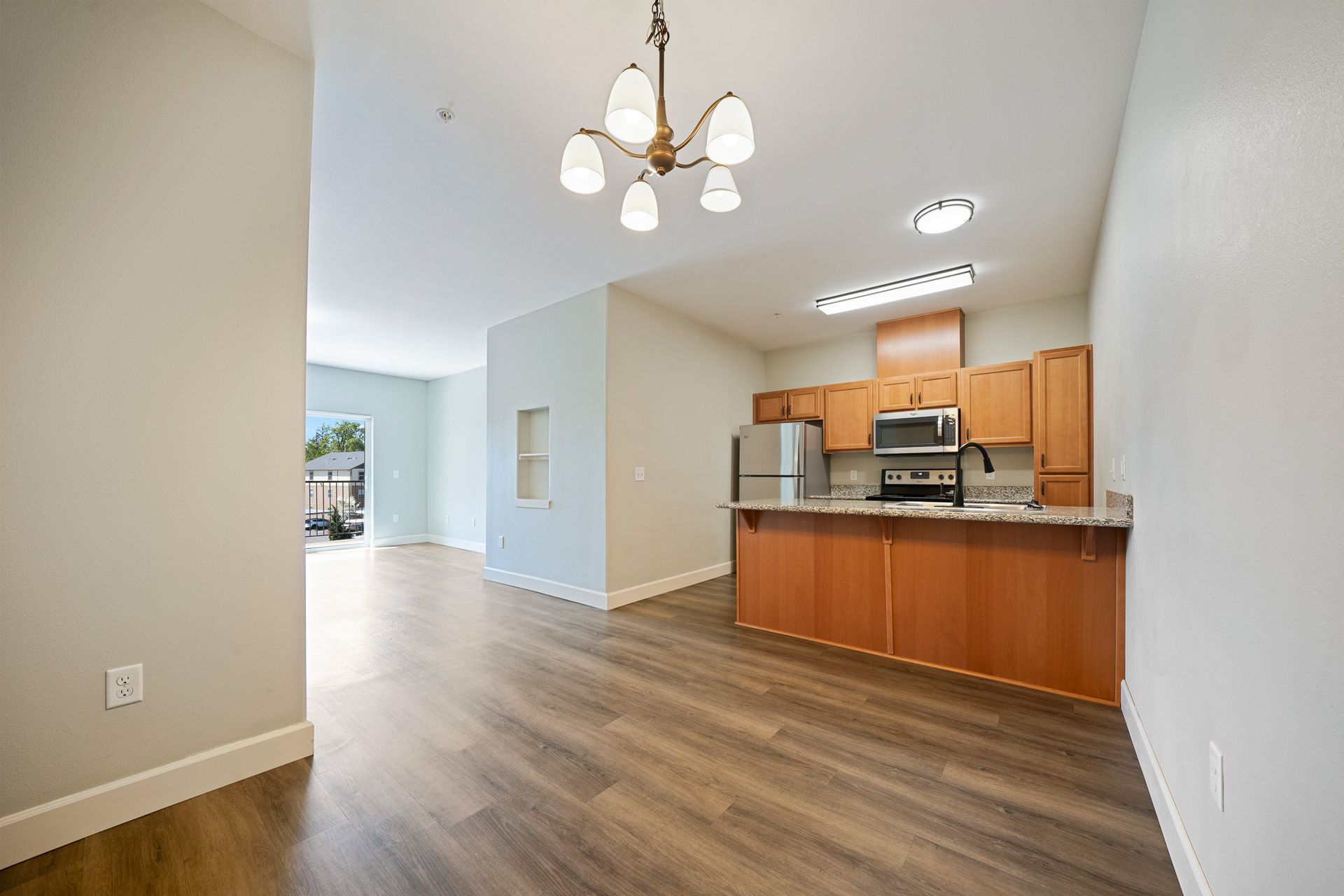 Gorgeous one- bedroom with luxury interior and open floorplan. Features luxury vinyl plank flooring, refrigerator with ice maker, built-in microwave, pantry, and washer and dryer! Enjoy coming home to relaxation.